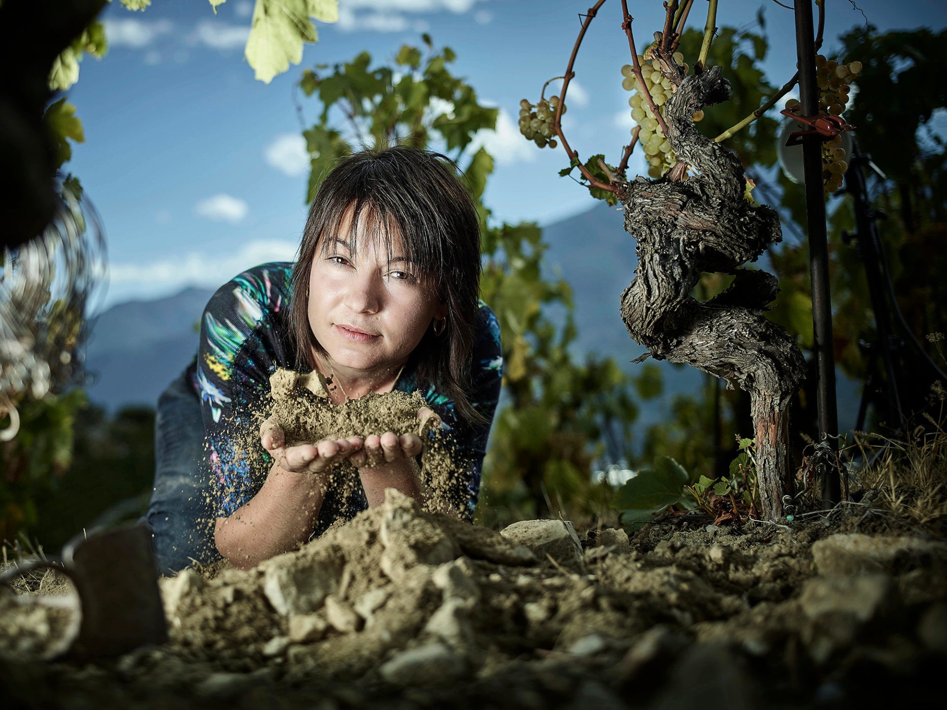 Ob bei der Bodenbearbeitung, der Auswahl der Pflanzen und Blumen, die auf ihrem Land gedeihen, dem Rebschnitt, der Reberziehung, dem Entknospen, dem Aufbinden, dem Entlauben, dem Ausgleichen der Trauben, dem Schneiden oder bei der Weinlese – sie arbeitet mit den Händen – und das mit grösster Authentizität und Präzision. All dies geschieht mithilfe von Kräutertees, ätherischen Ölen, Kieselerde und unter Beachtung des Mondkalenders, aber ohne jeglichen Dogmatismus.